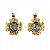 925 ° silver amulet gilded around the perimeter, with Jesus Christ on the front and the Blessed Virgin Mary on the back, with embossed letters around the perimeter with the "Lord Jesus Christ have mercy"