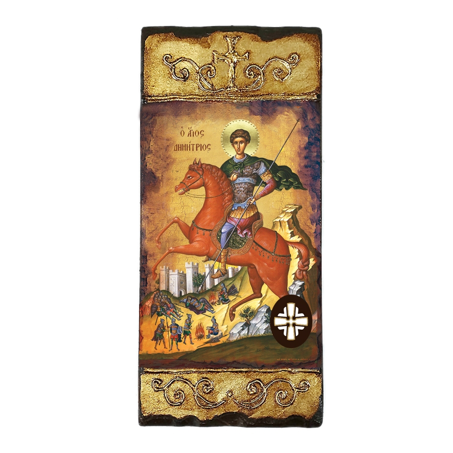 The Representation of the image was made by a monk of Mount Athos in the Byzantine style. It is handmade and the artificial aging upgrades aesthetically the image and gives it collectible value.