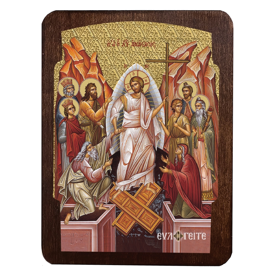 Unique Byzantine silkscreen with gold leaf on a hagiography canvas crafted with the polished pickaxe technique. The wonderful colors and amazing Byzantine relief designs remain unchanged over time.