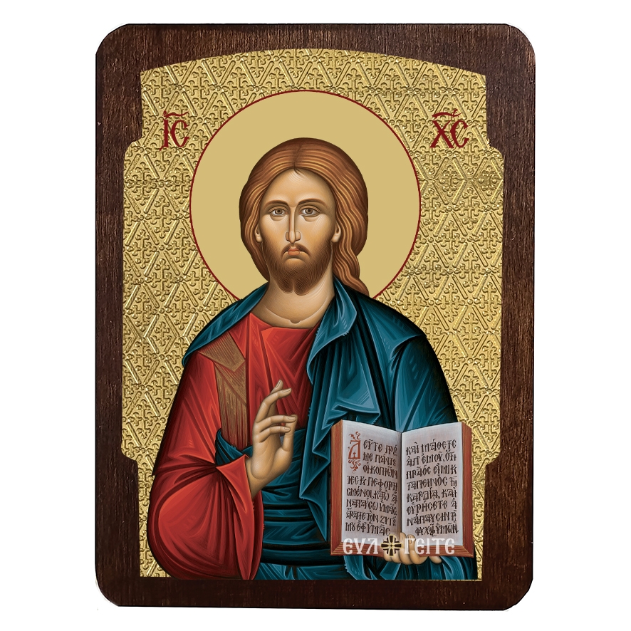 Μοναδική βυζαντινή μεταξοτυπία με φύλλο χρυσού επάνω σε καμβά αγιογραφίας φιλοτεχνημένη με την τεχνική του στιλβωτού τσουκάνικου. Τα υπέροχα χρώματα και τα εκπληκτικά βυζαντινά ανάγλυφα σχέδια παραμένουν αναλλοίωτα στο πέρασμα του χρόνου